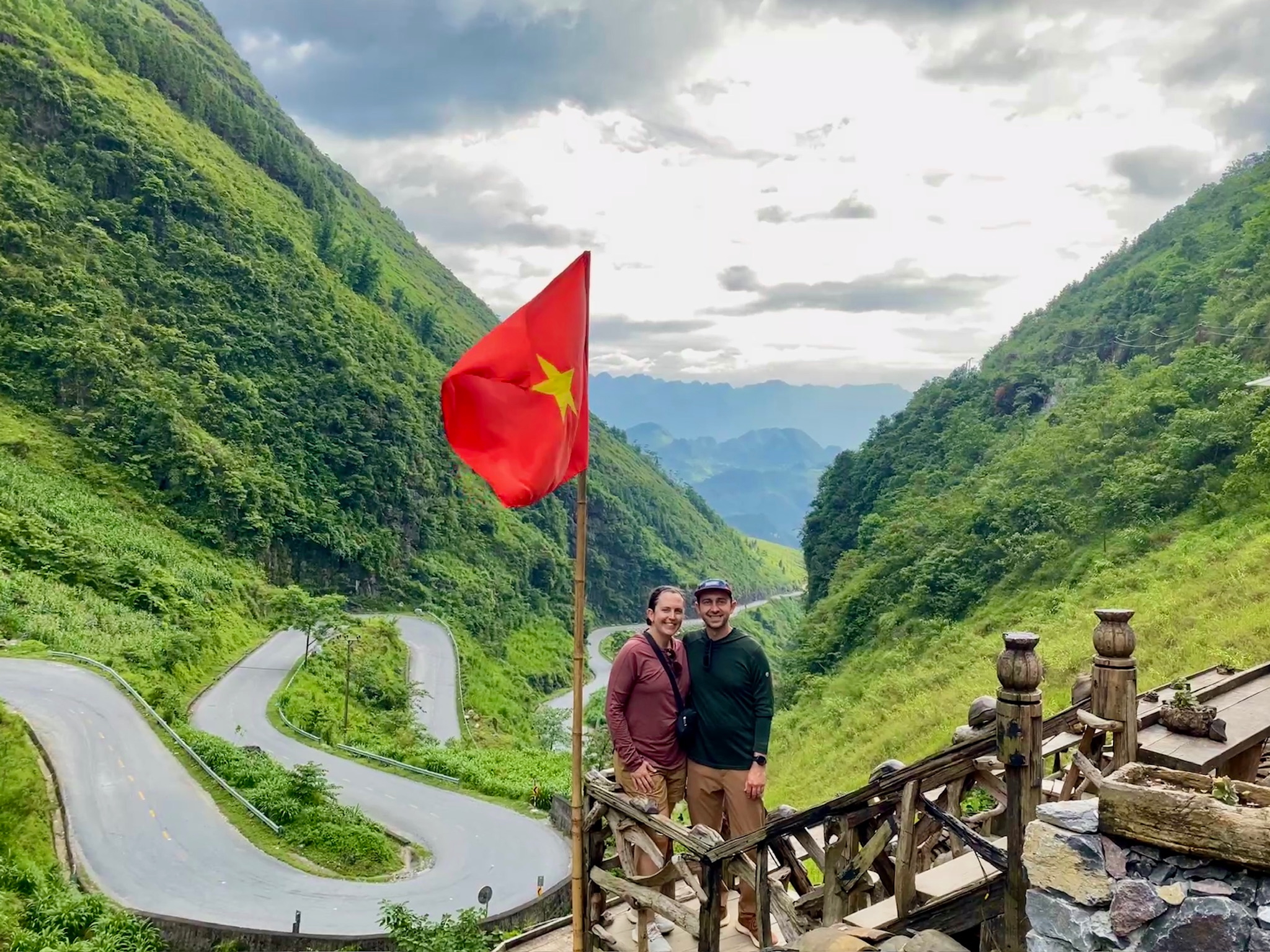 Vietnam flag. A view of China in the distance.